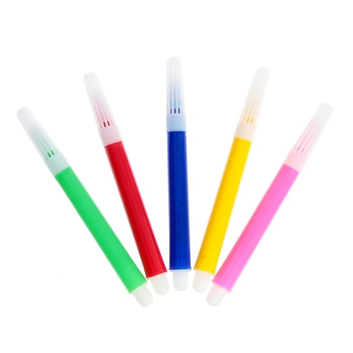 - В комплект входят 5 фломастеров. Ими малышка раскрасит платье куклы и создаст уникальный принт!