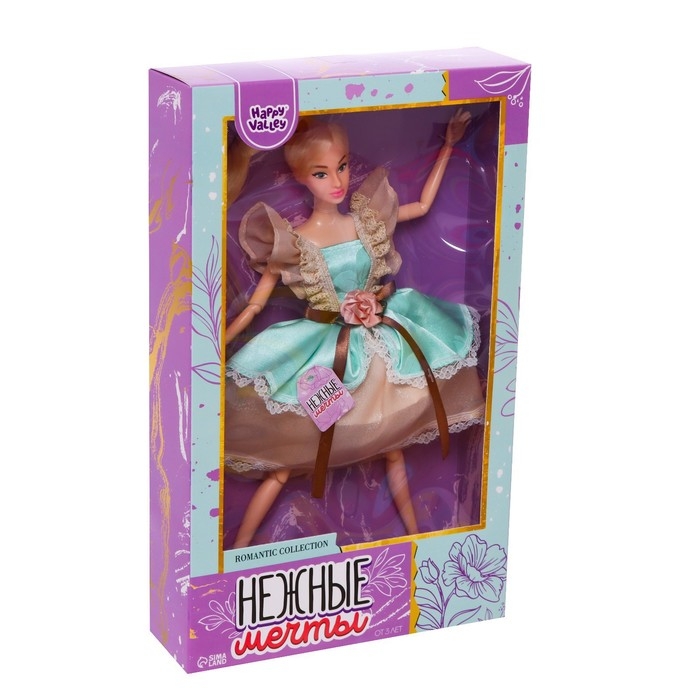 Кукла-модель шарнирная «Нежные мечты», в бежево-бирюзовом платье