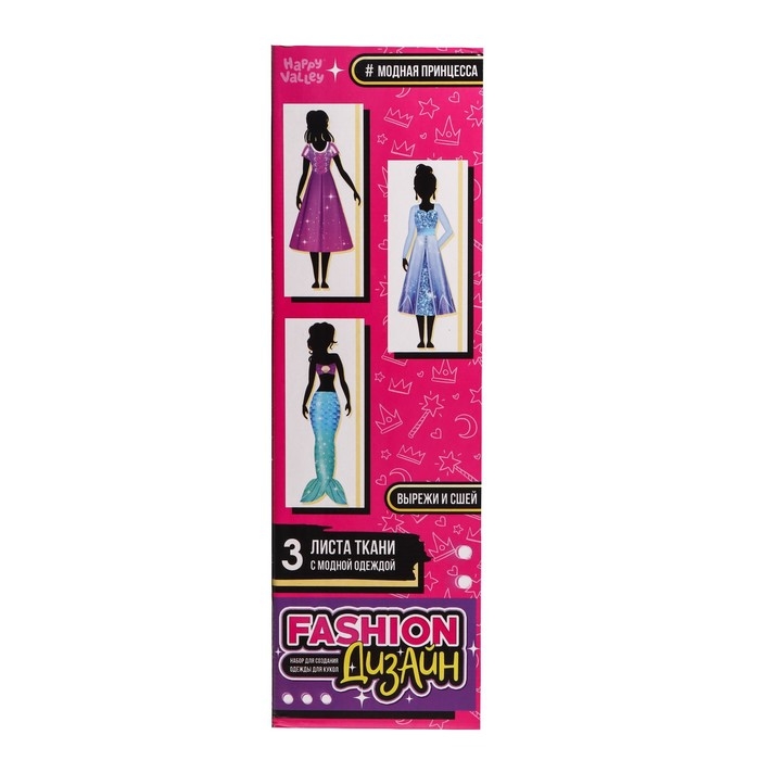 - В наборе есть три листа ткани с модной одеждой, которую начинающий стилист изготовит сам. На детали уже нанесены линии, по которым нужно вырезать и сшить их.