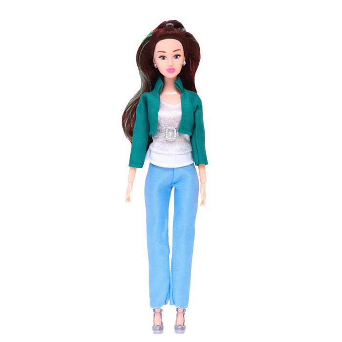 - Джинсы, топ, пиджак и туфли снимаются. Ребёнок сможет придумать для куколки новые наряды.