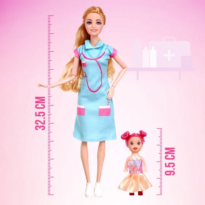 Кукла-модель шарнирная «Врач» с малышкой, с аксессуарами, МИКС