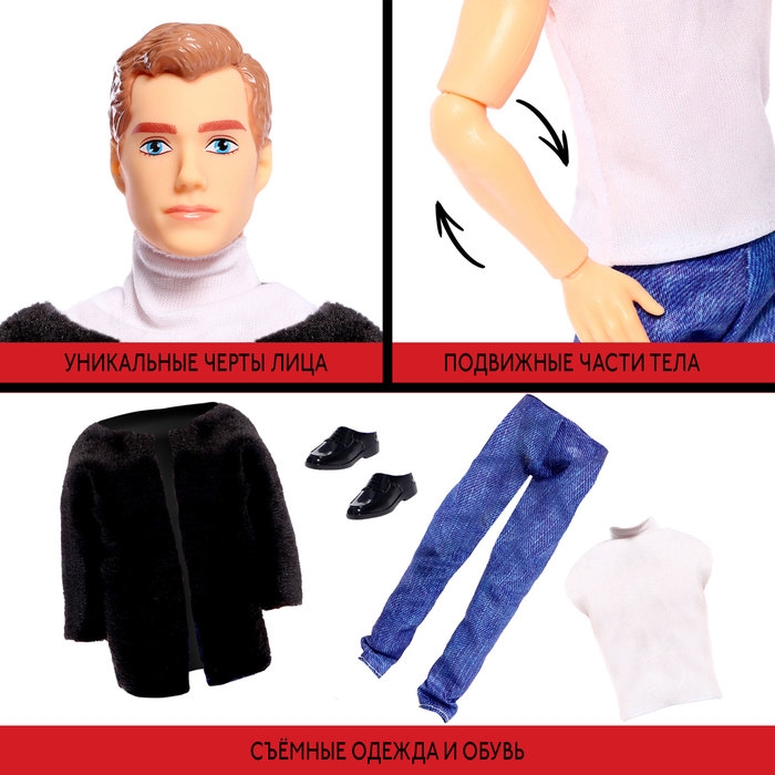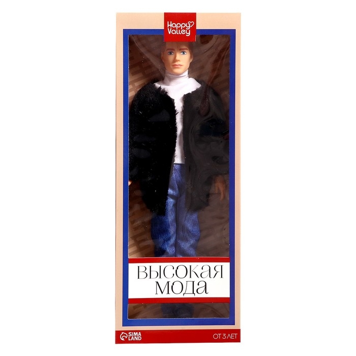 Кукла-модель «Высокая мода», чёрный полушубок