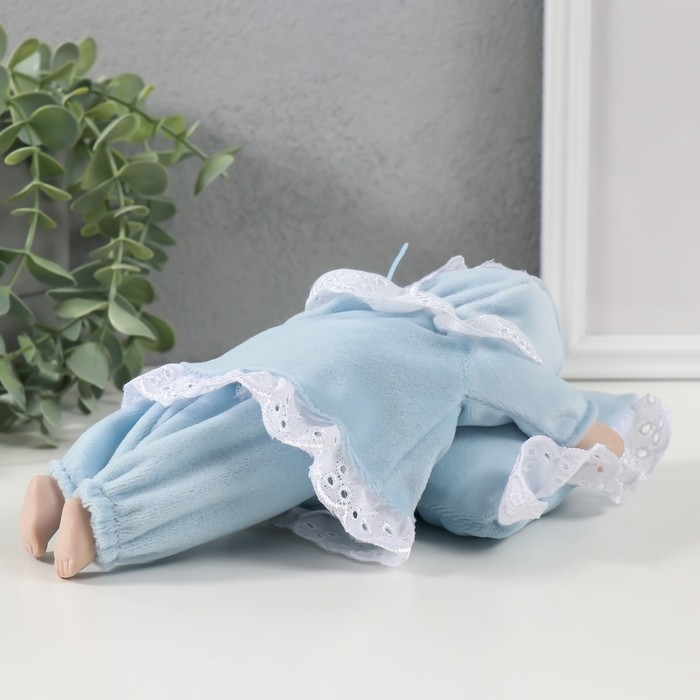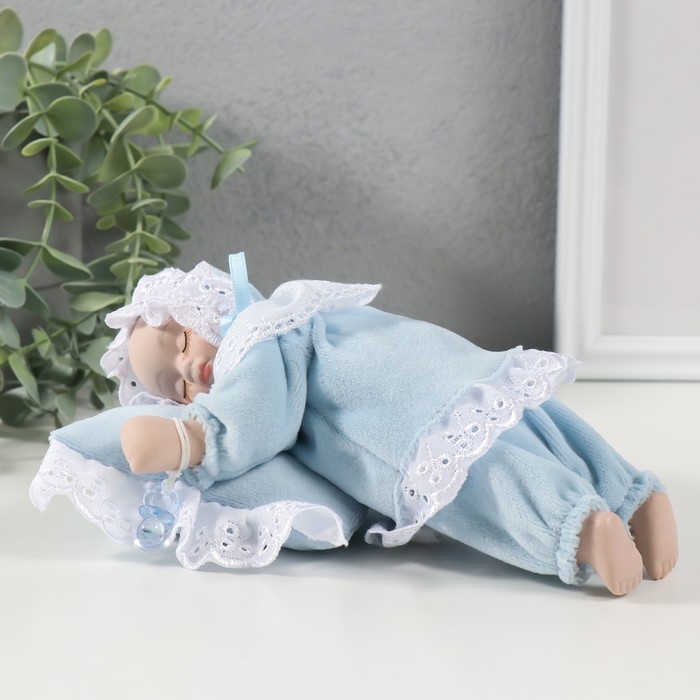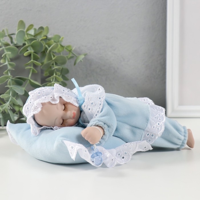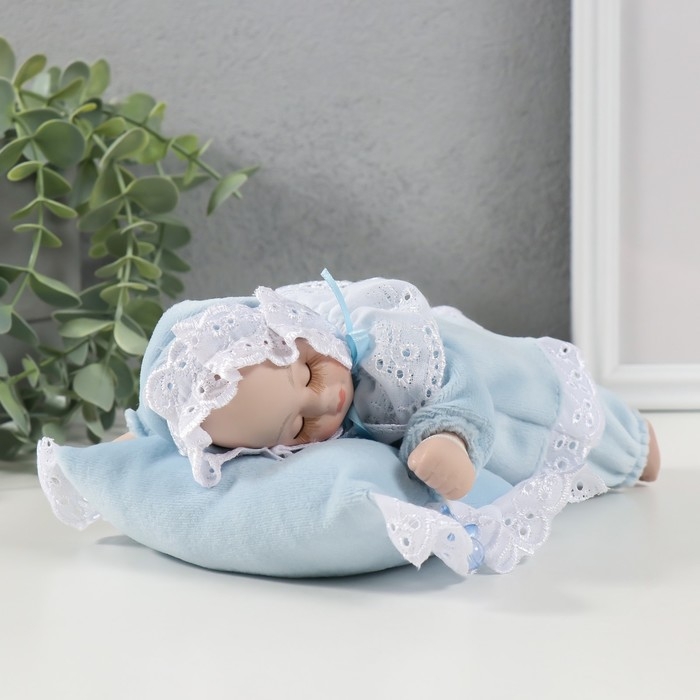 Кукла музыкальная механическая "Малыш спящий на подушке" голубой, двигается 13,5х19,5х8 см 104624