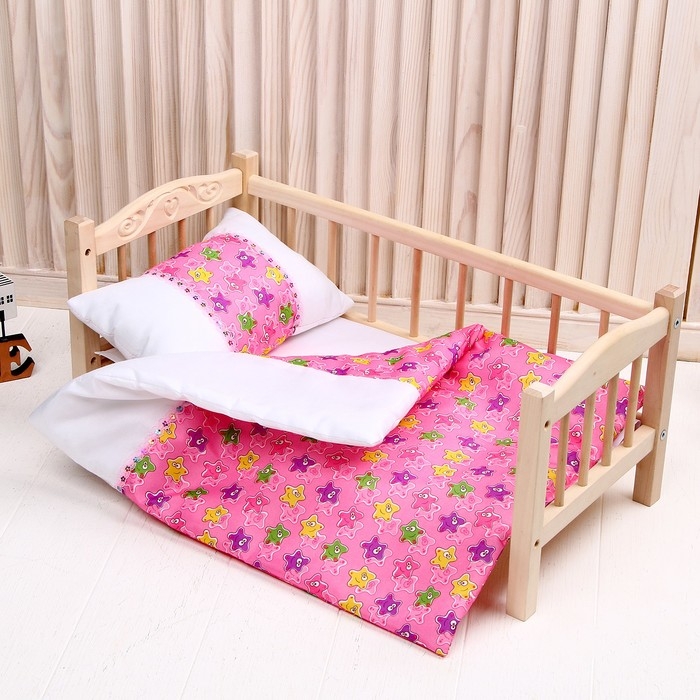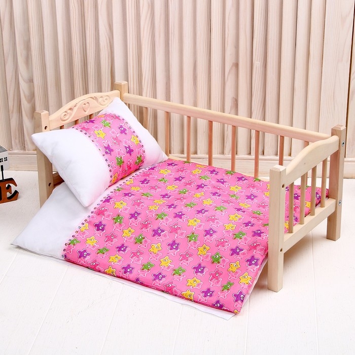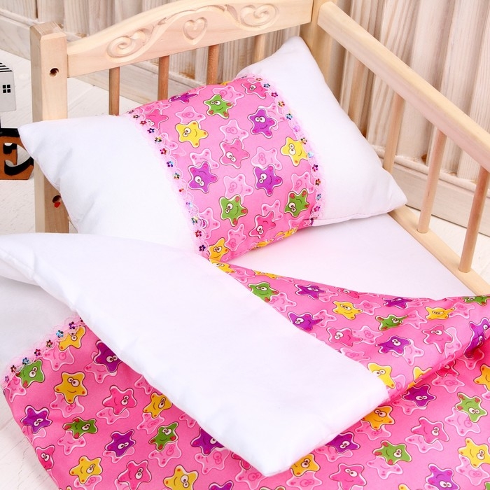 Кукольное постельное «Медузы на розовом с тесьмой»: простынь, одеяло 46 × 36 см, подушка 23 × 17 см