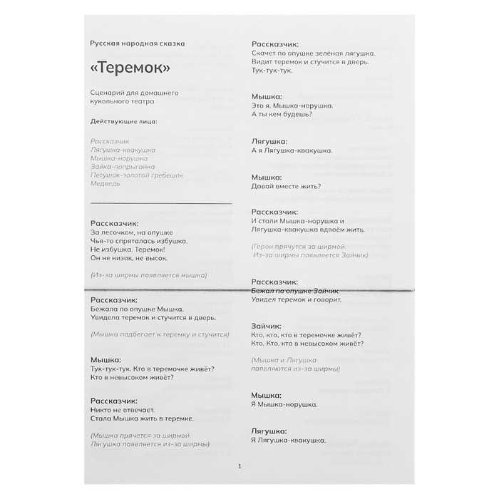Кукольный театр «Сказка: Теремок», 5 кукол на руку, сценарий