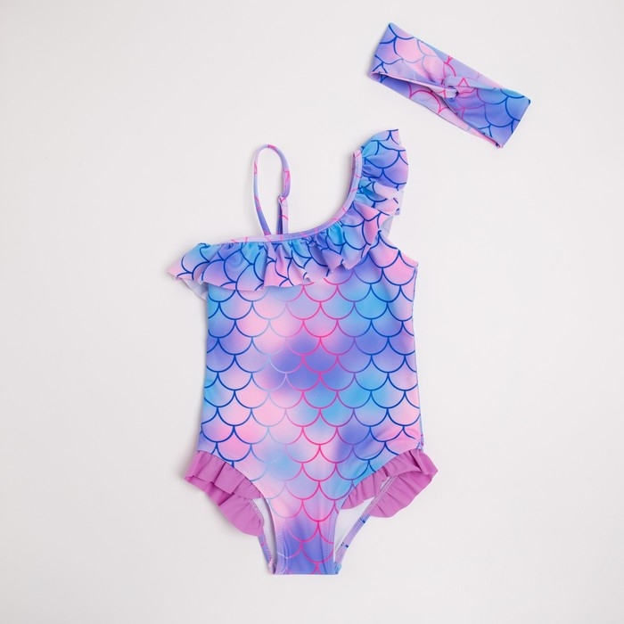 Купальник детский слитный MINAKU с повязкой, цвет фиолетовый/синий, рост 128-134