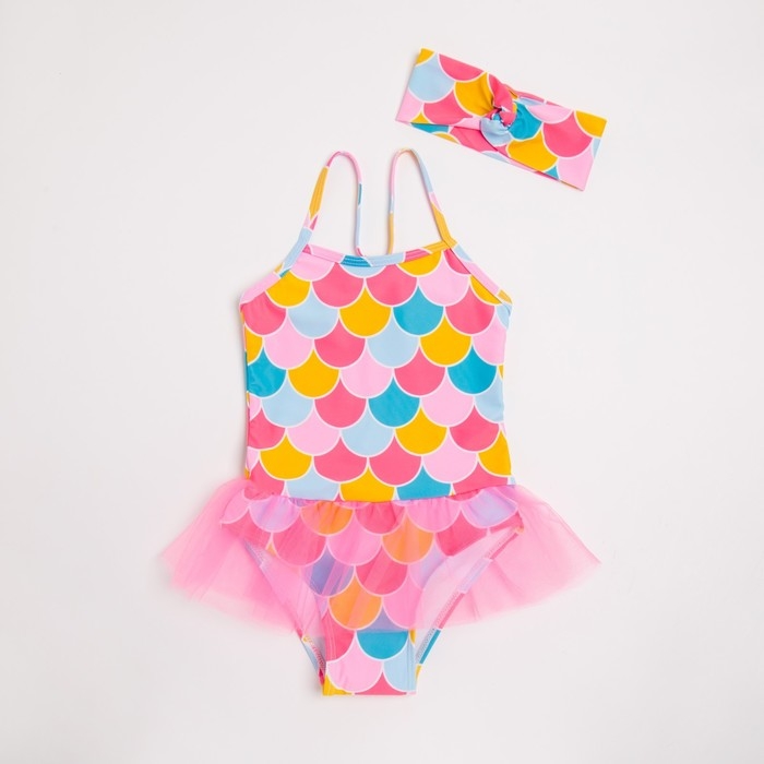 Купальник для девочек + шапочка ONLYTOP, р. 26, рост 98 см, обхват 46-52 см