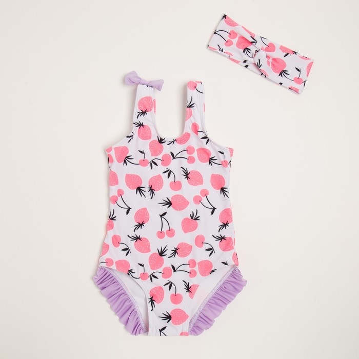 Купальник для девочек + шапочка ONLYTOP, р. 26, рост 98 см, обхват 46-52 см