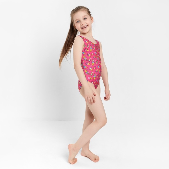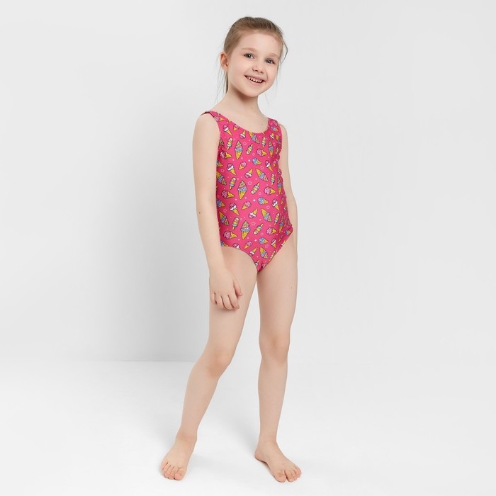 Купальник слитный, цвет розовый/мороженое, рост 128 см