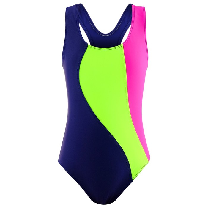 Купальник слитный «Волна», тёмно-синий/зелёный неон/фуксия, р. 36