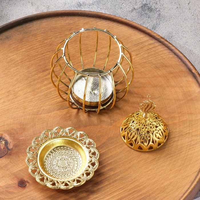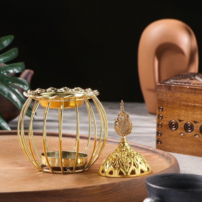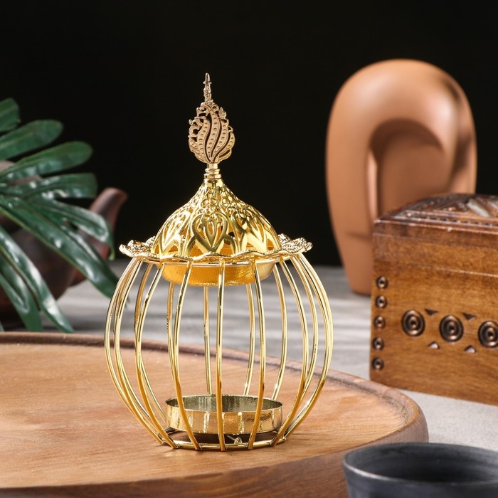Курильница для благовоний порошковых и конусов "Золотая клетка", золотистый, 16х9,5 см