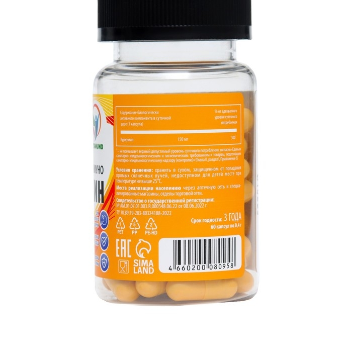 Куркумин с пиперином Иммуно, 60 капсул по 0,4 г