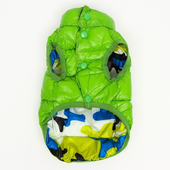 Куртка для собак двухсторонняя с принтом, размер 8 (ДС 20 см, ОГ 30, ОШ 22 см), зелёная
