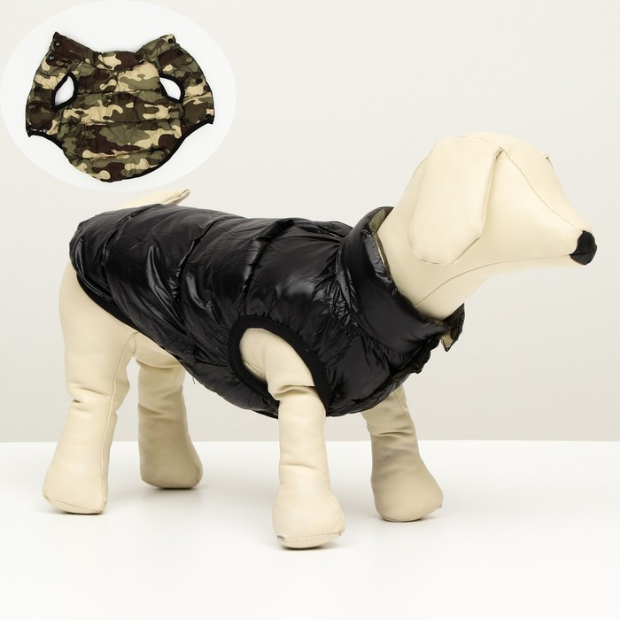 Куртка для собак двухсторонняя с принтом, размер 8 (ДС 23 см, ОГ 30, ОШ 22 см), чёрная