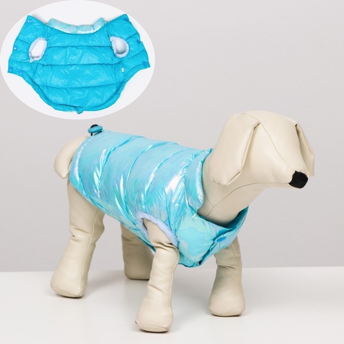 Куртка для собак со светоотражающей шлейкой, размер 16 (ДС 36, ОГ 46, ОШ 35), голубая