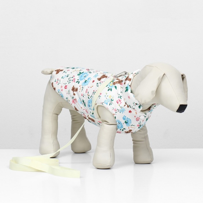 Яркая, стильная куртка с воротником и поводком станет любимой вещью в гардеробе Вашего питомца! Модель унисекс объединила всё лучшее для вашей собаки. Куртка для собаки выполнена из полиэстера, который не пропускает влагу, защищает от ветра и грязи. Лёгкая и удобная куртка для собак мелких пород внесёт немного праздника в серые, осенние будни. Имеет утепленный флисовый подклад и свободные манжеты, которые не будут стеснять движения животного. Застёгивается курточка на животе металлическими кнопками. Воротник защитит вашего любимца от ветра, а поводок, который идет в комплекте, точно будет сочетаться с курточкой по цвету. На спинке имеется кольцо для крепления поводка. Если мерки вашей собачки попадают между размерами, лучше взять размер побольше, в этом случае внутрь можно одеть свитер, а собачке будет комфортно двигаться. Модель неприхотлива в уходе. Хорошо стирается в стиральной машине на деликатном режиме 30 градусов с щадящими моющими средствами. Нельзя отбеливать!