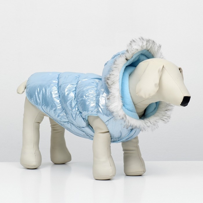 Куртка для собак со светоотражающей шлейкой, размер 12 (ДС 28, ОГ 38, ОШ 27), голубая