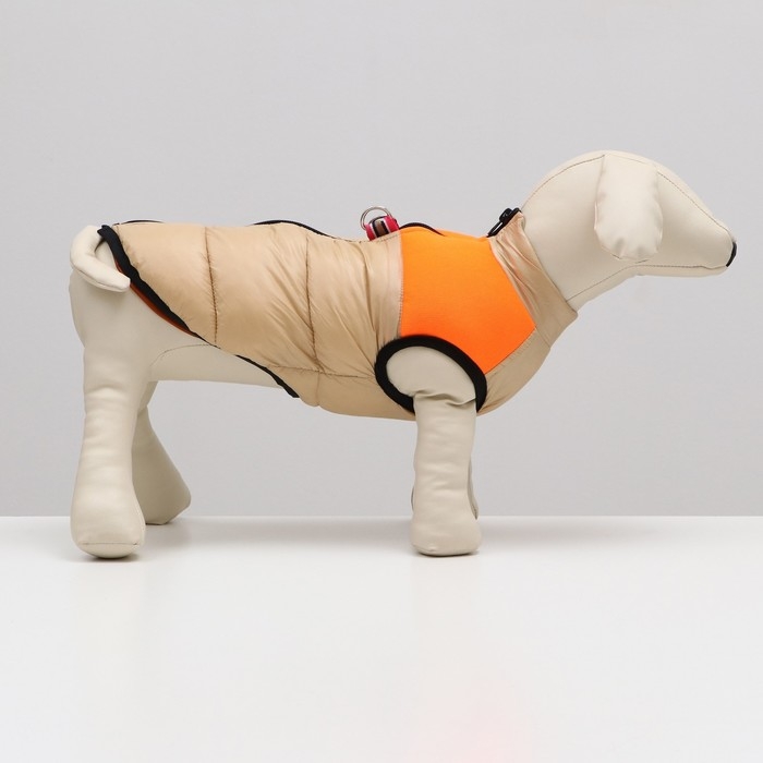 Куртка для собак на молнии, размер 18 (ДС 40 см, ОГ 50 см, ОШ 38 см), бежевая с оранжевым