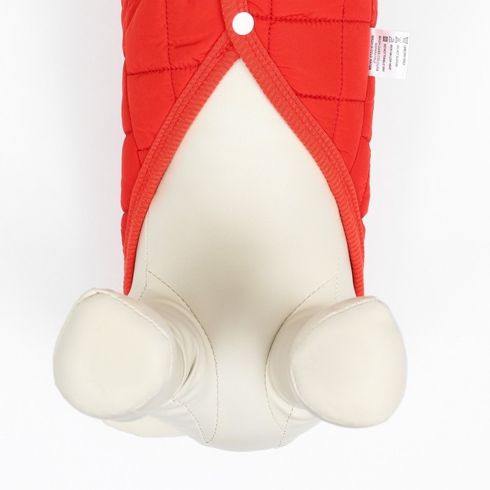 Тёплая, стёганая куртка подойдёт вашему питомцу в холодную погоду!Куртка с открытым животом пойдет, как для мальчиков, так и для девочек. Не сковывает движений, надежно защищает от грязи, дождя и ветра.Представлена в ярко красной расцветке. Куртка застегивается кнопками на животе, что позволяет легко надевать и снимать. Внутри имеется тёплый подклад.На спине куртки имеется кольцо для поводка, что облегчит подготовку к прогулкам.Позаботьтесь о своем любимце - это куртка обеспечит вашего любимца комфортом и теплом в плохую погоду.