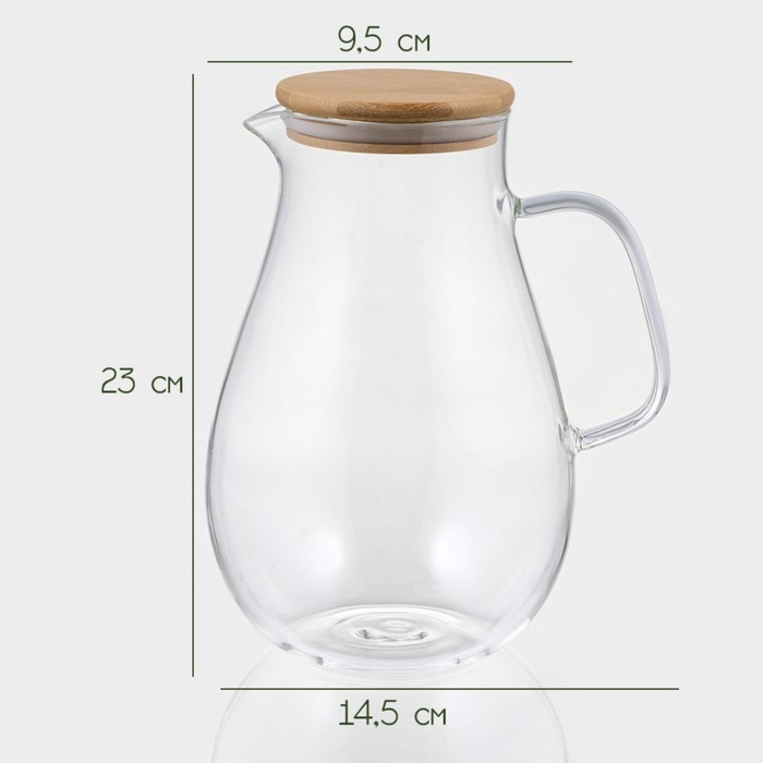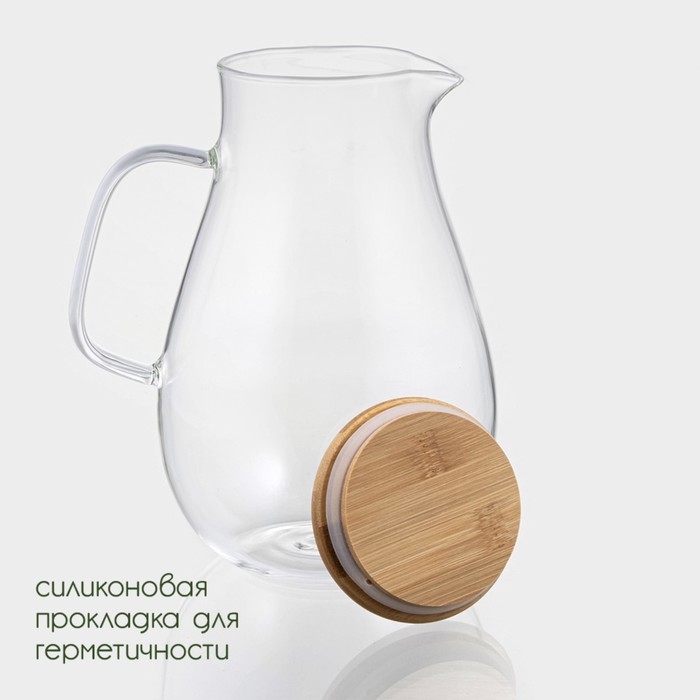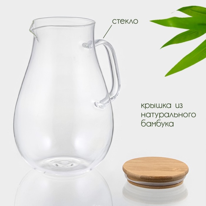 Кувшин для воды стеклянный с бамбуковой крышкой BellaTenero «Эко», 1,8 л, 14,5×23 см