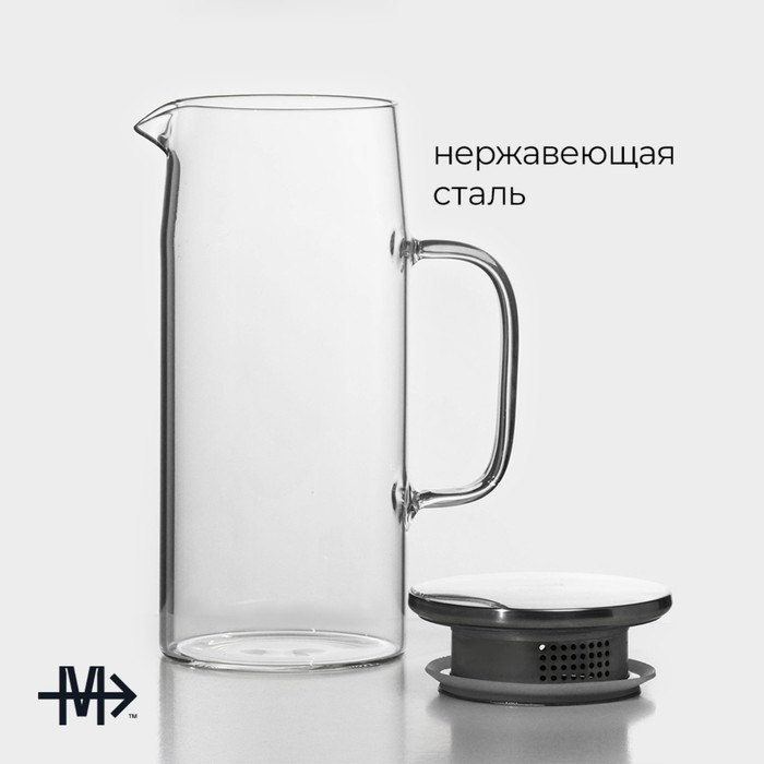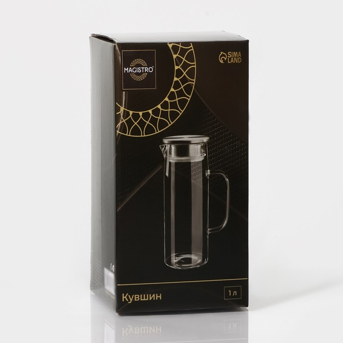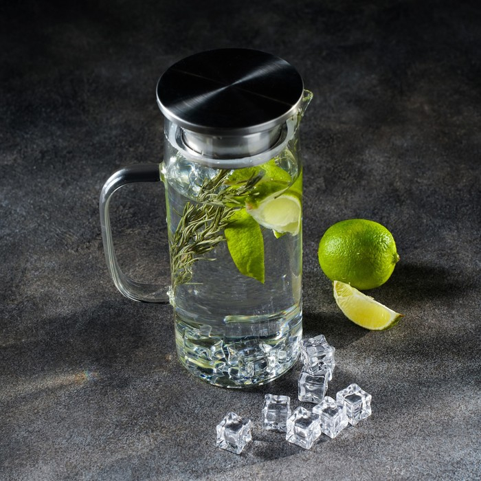 Кувшин для воды стеклянный с металлической крышкой Magistro «Богема», 1 л, 9×21 см, с крышкой, цвет крышки серебряный