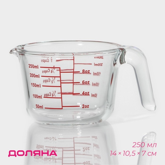 Кувшин мерный из жаропрочного стекла Доляна «Классика», 250 мл, 14×10,5×7 см