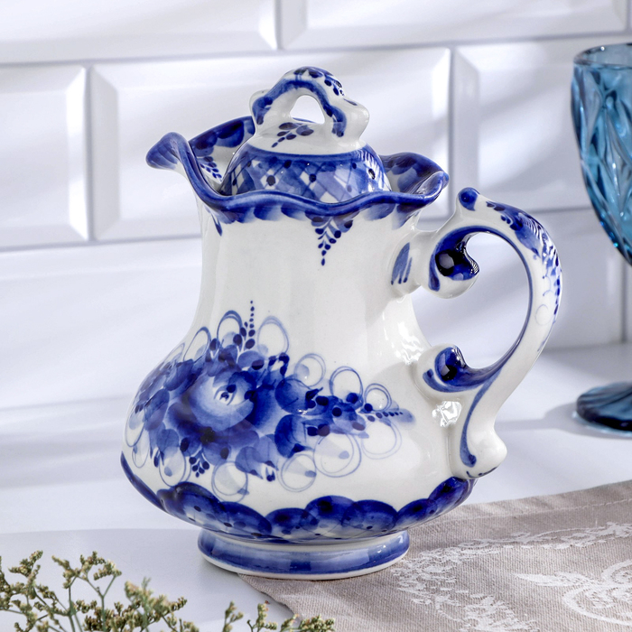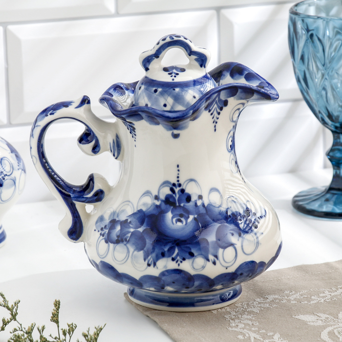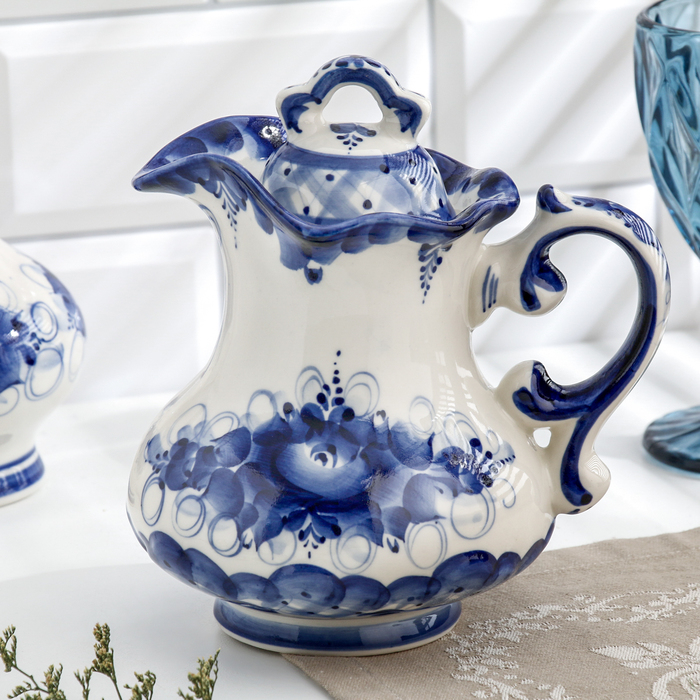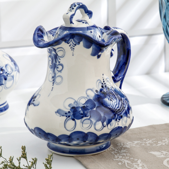 Кувшин "Утро", гжель, фарфор, 18х16 см