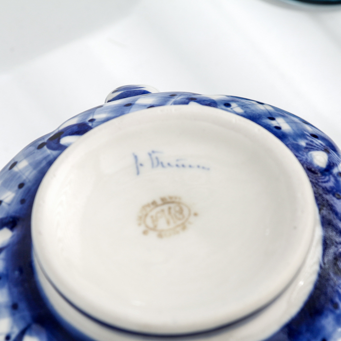 Так появился узнаваемый стиль гжели — синяя пейзажная и растительная роспись, которая соединяется с геометрическим орнаментом на белоснежном фоне. Мастера расписывают каждый предмет только вручную.