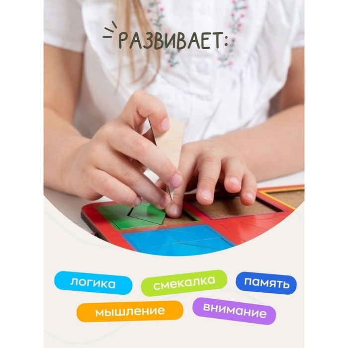 - Постепенно усложняйте задания: попробуйте собрать квадраты на время и сложить разные силуэты из частей.