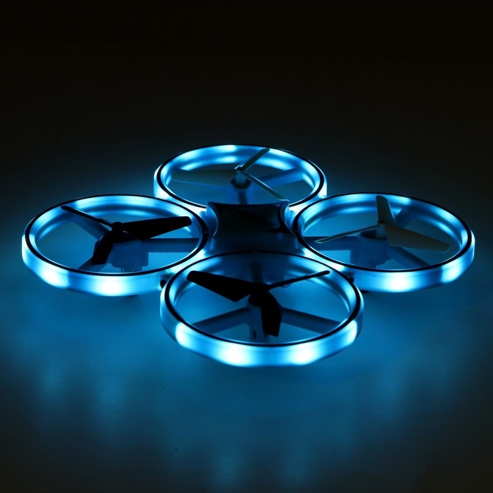 Квадрокоптер радиоуправляемый DRONE, подсветка, работает от аккумулятора, цвет синий