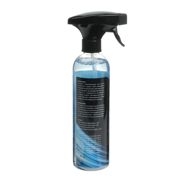 Способ применения: нанести состав на мокрый кузов автомобиля при помощи распылителя, распределить по лакокрасочному покрытию губкой или микрофиброй, затем смыть водой с помощью аппарата высокого давления.