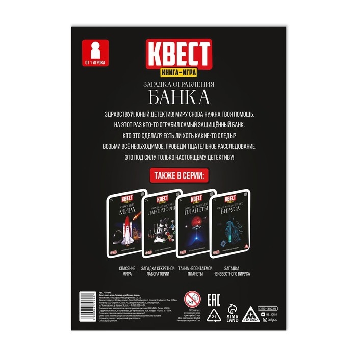 Квест книга-игра «Загадка ограбления банка», 26 страниц, 7+