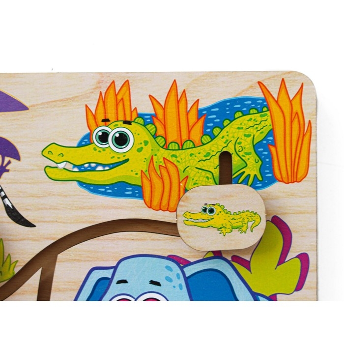 - Лабиринт познакомит малыша с животными Африки. Такими как: обезьяна, жираф, зебра, носорог, крокодил и слон. А также познакомит с размерами и цветами.