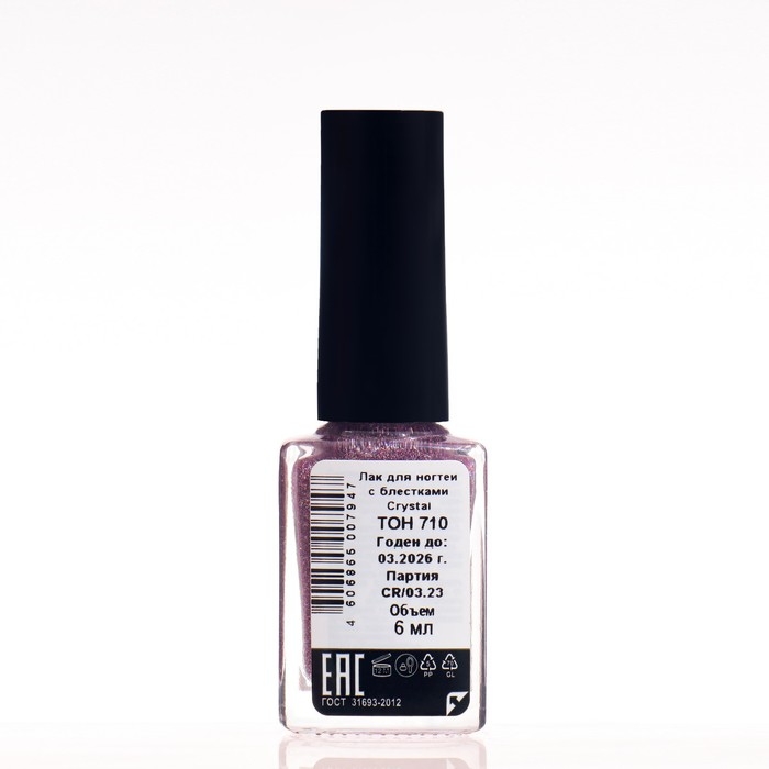 Лак для ногтей розовый с блестками, голографический, тон 710, 6 мл