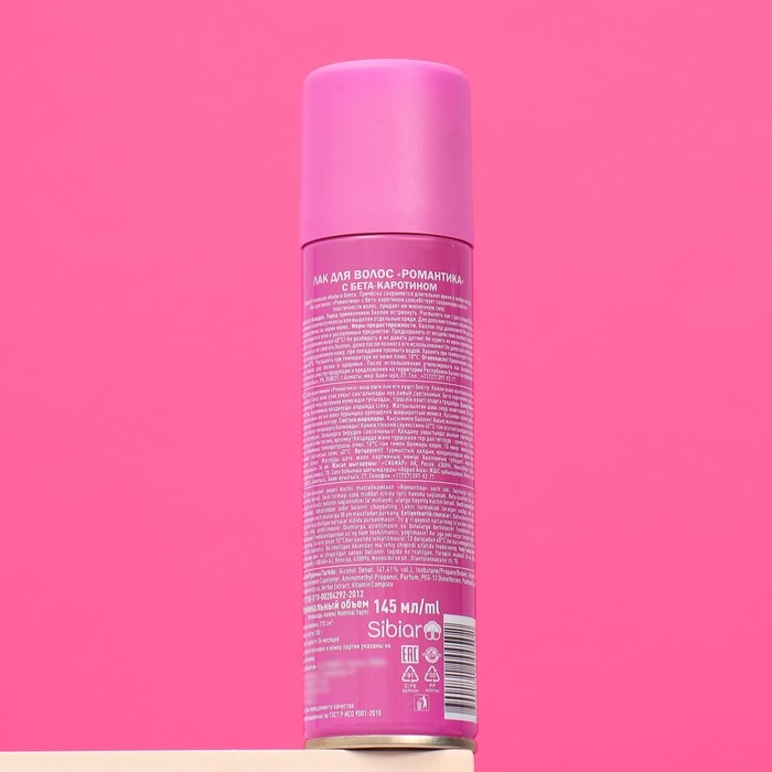 Лак для волос "Романтика", очень сильная фиксация, с В-каротином, 145 мл