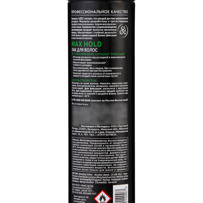 Лак для волос Сьесс Max Hold, максимально сильная фиксация, 400 мл