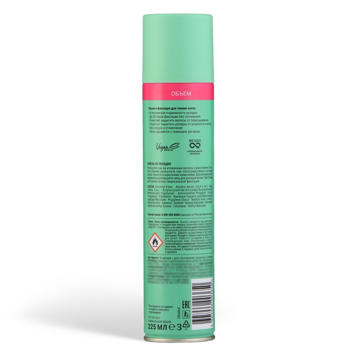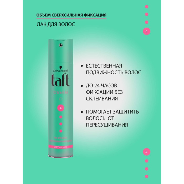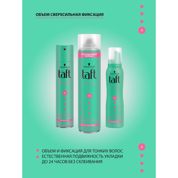 Лак для волос Тафт «Объём», для тонких волос, сверхсильная фиксация, 225 мл