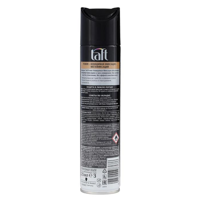 Лак для волос Тафт Power «Невидимая фиксация», мегафиксация, 225 мл