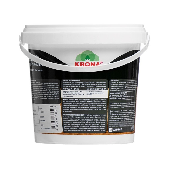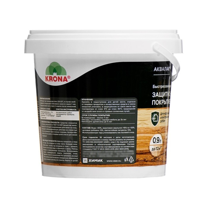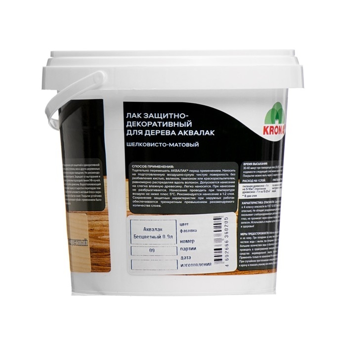 Лак защитно-декоративный для дерева Аквалак "KRONA" бесцветный 0,9 л