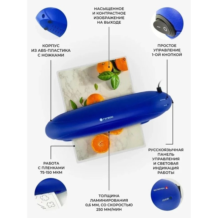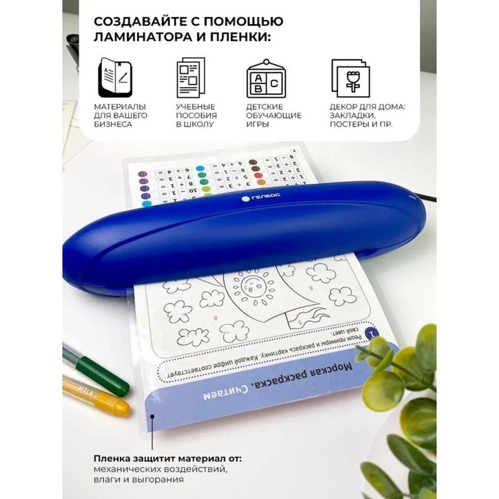 Ламинатор A4 75-150 мкм, 2 вала, скорость 25 см/мин, Гелеос Радуга, синий "ЛМА4РС"