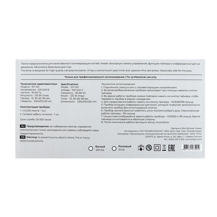 Лампа для гель-лака TNL Easy Pro, UV/LED, 120 Вт, 36 диодов, таймер 10/30/60/99 с, белая
