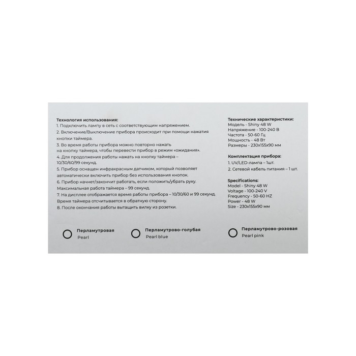 Лампа для гель-лака TNL Shiny, UV/LED, 48 Вт, 30 диодов, таймер 5/30/60 сек, перламутровая