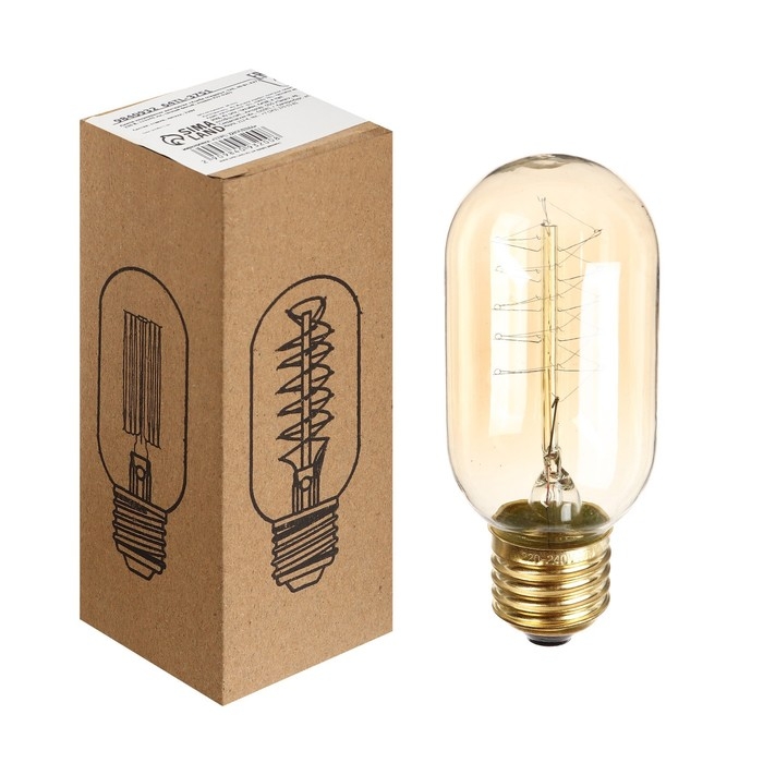 Лампа накаливания винтажная "Колба спираль", T45, 40 Вт, Е27, 230 В, 113х45 мм, теплый белый 98409