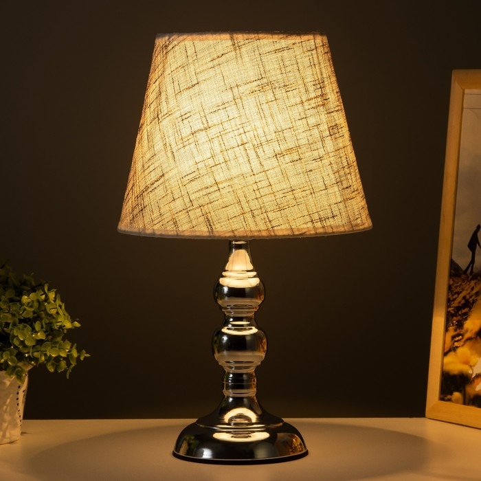 Настольная лампа «Адель» с текстильным абажуром украсит интерьер в классическом стиле. Глянцевое серебряное основание добавит элегантности спальне или гостиной. Хорошо сочетается с любыми цветами мебели или стен.