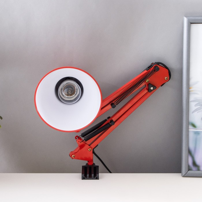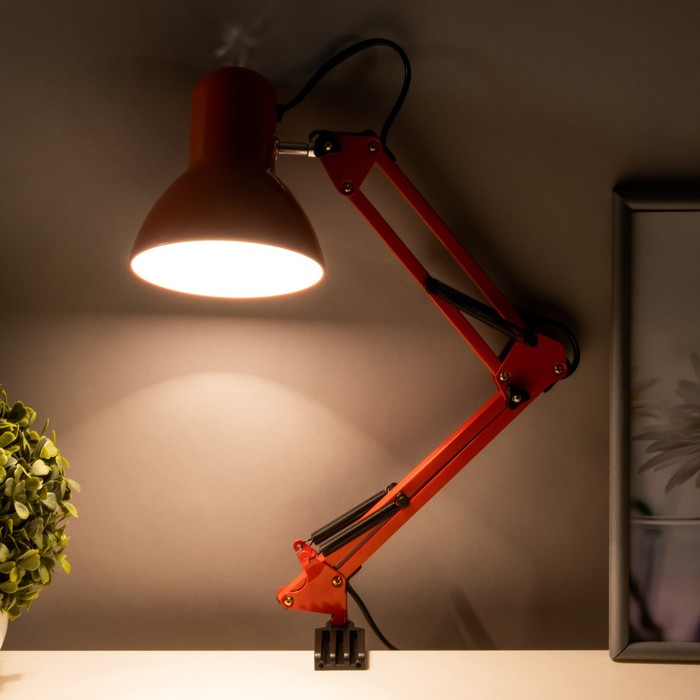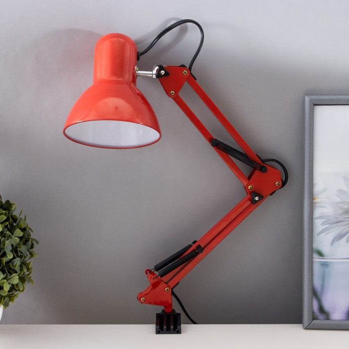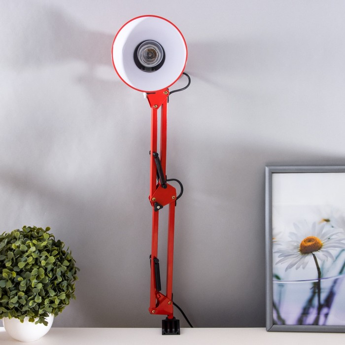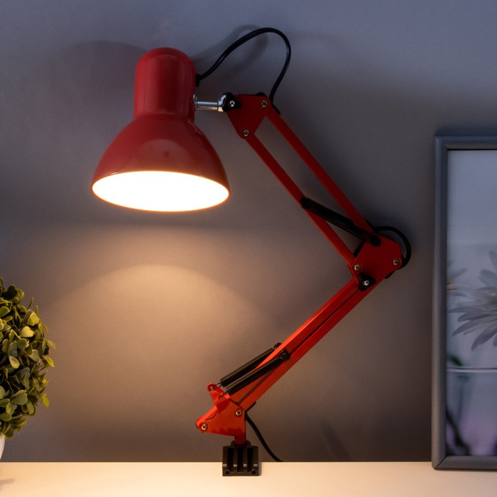 Лампа настольная Е27, h=55 см, шарнирная, на зажиме (220В) красная RISALUX
