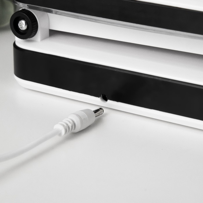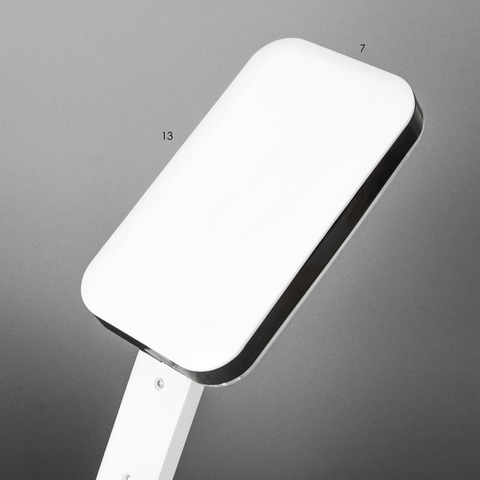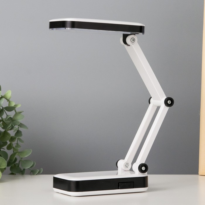 Компактный мобильный светильник имеет подвижные части корпуса, которые складываются и раскладываются. Плафон поднимается и опускается на достаточную для глаз высоту.