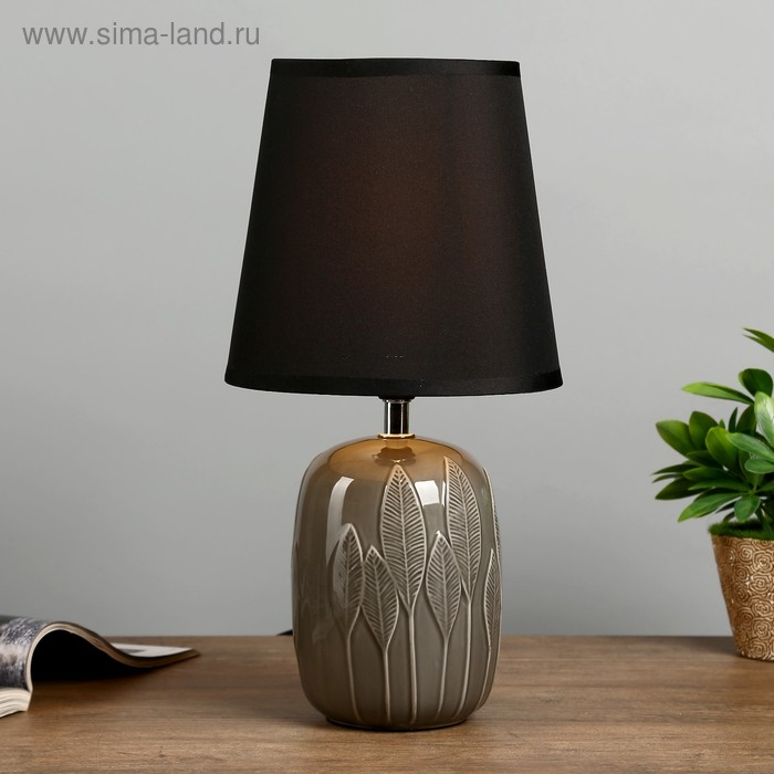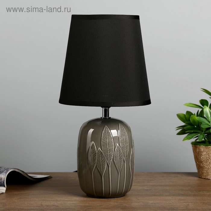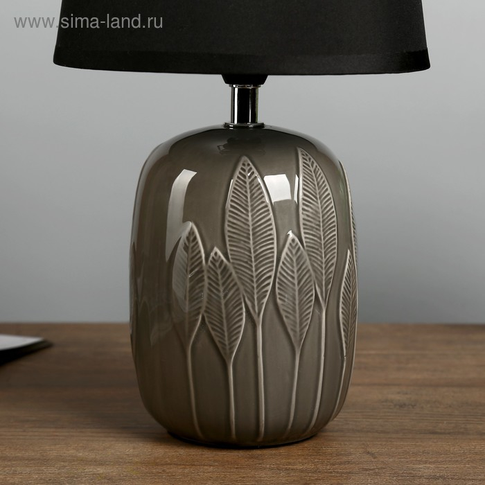 Декоративная настольная лампа «Ясень» с текстильным абажуром украсит интерьер в стиле модерн. Керамическое основание украшено рельефным травяным орнаментом.