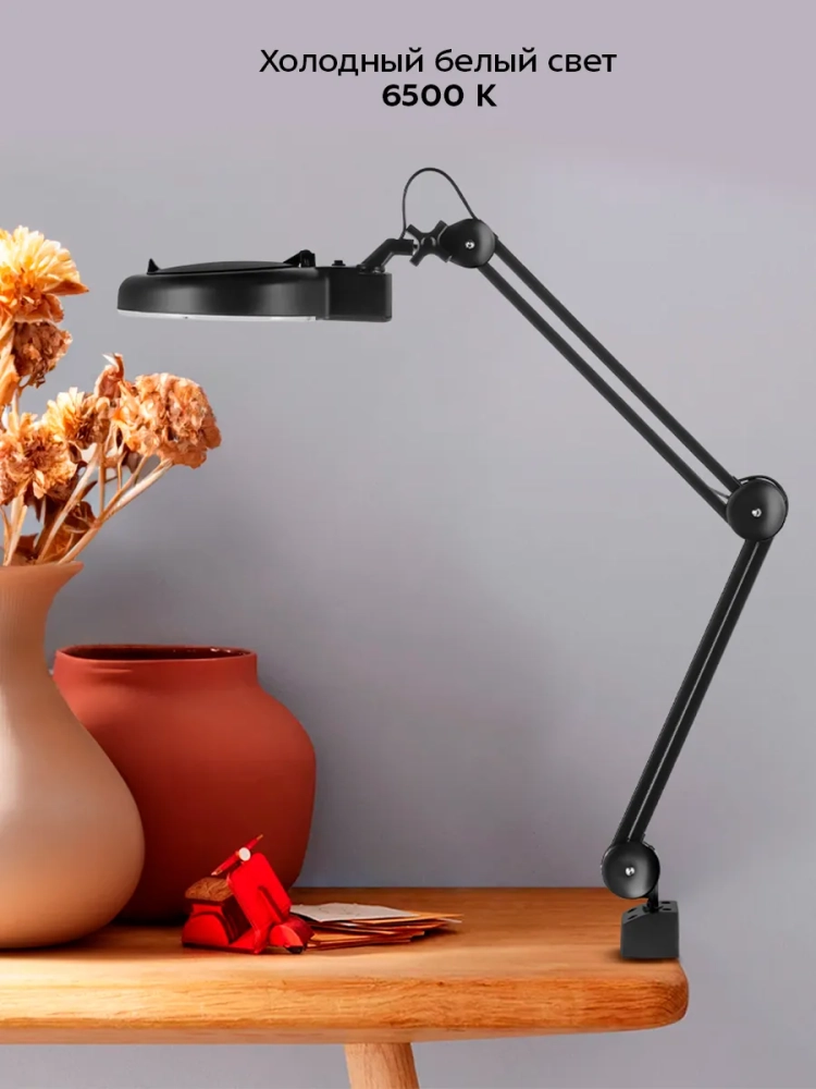 Лампа с лупой светодиодная на струбцине КТ-3723 - 12 Вт