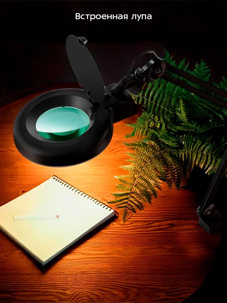 Настольная лампа Kitfort КТ-3723 –– эргономичная светодиодная лампа, которая отлично подойдет для освещения рабочего пространства дома или в офисе. Также в рассеиватель встроена лупа, что очень удобно. Отлично подходит для работы мастера маникюра, косметолога, бровиста и других бьюти-мастеров.