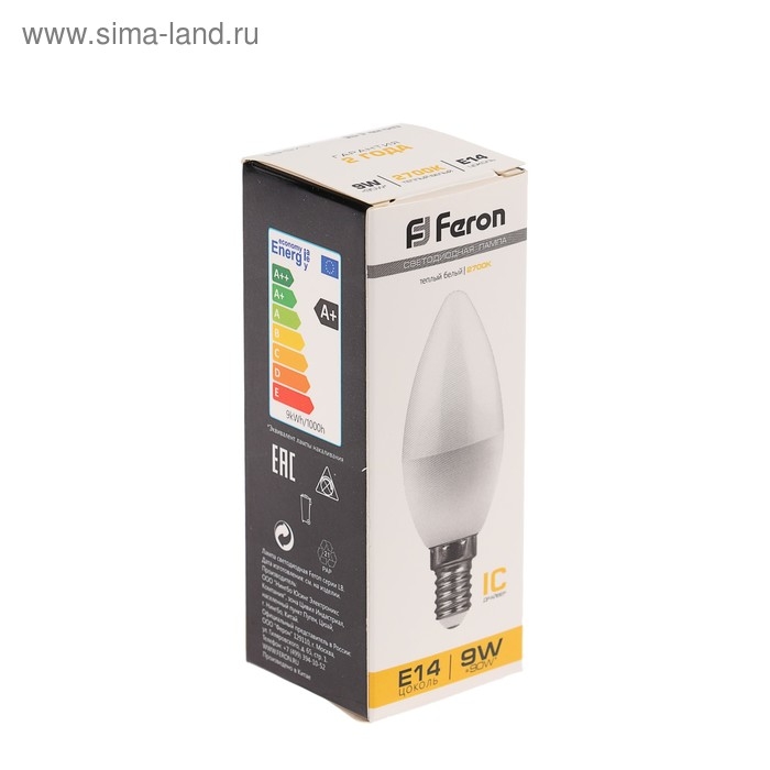 Лампа светодиодная FERON, С37, 9 Вт, Е14, 2700 К, теплый белый